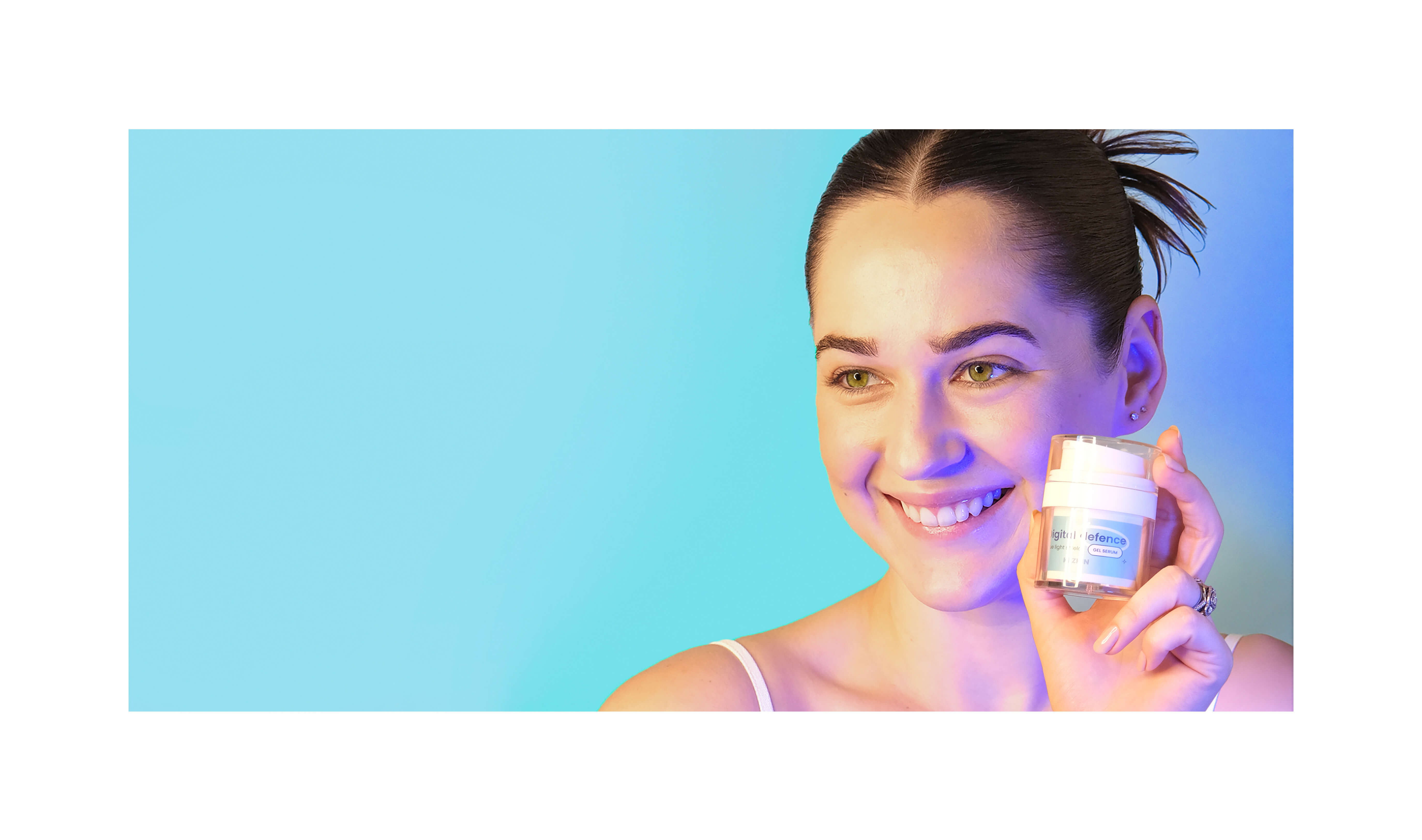 Glow on with our blue light shield hyaluronic gel serum. Expertly formulated to deliver long-lasting hydration, while strengthening the skin barrier to defend against the visible effects of digital blue light pollution.